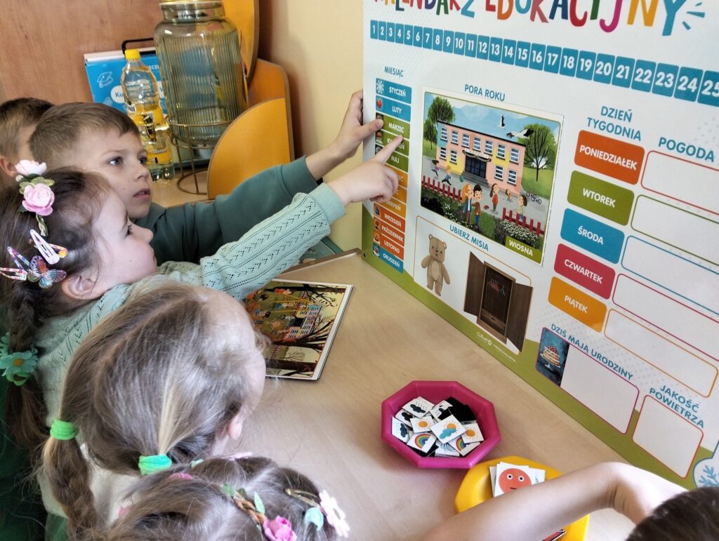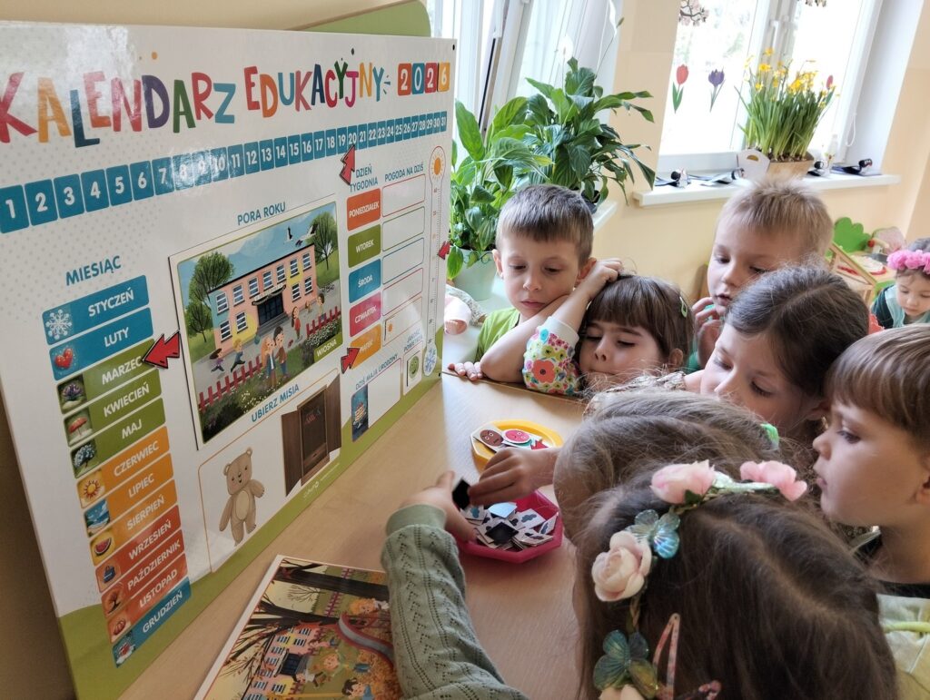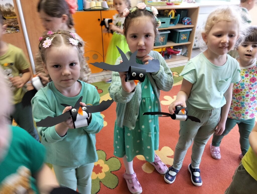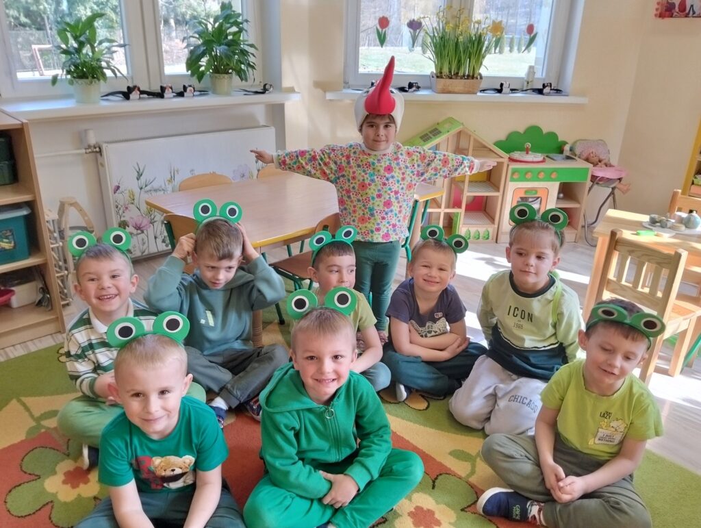 Dzieci ubrały się z tej okazji w kolorze zielonym, który symbolizuję tę porę roku. Przywitanie rozpoczęliśmy recytacją wiersza pt. „Wiosna” następnie obejrzeliśmy film edukacyjny i rozwiązywaliśmy zagadki o nowej porze roku, zaśpiewaliśmy również radosną piosenkę o wiośnie. Dzieci uczestniczyły w wielu zabawach ruchowych z Panią Wiosną i z Bocianem, Tańczyły do utworu „Cztery pory roku – Wiosna” A. Vivaldiego. Uzupełniły kalendarz pogody zaznaczając porę roku, miesiąc, dzień, temperaturę powietrza, pogodę, Dzień wcześniej dzieci samodzielnie zrobiły na zajęciach plastycznych przestrzenne jaskółki i na koniec posiały rzeżuchę, którą w najbliższych dniach będziemy obserwować jak rośnie. To był piękny i radosny dzień dla naszych przedszkolaków.